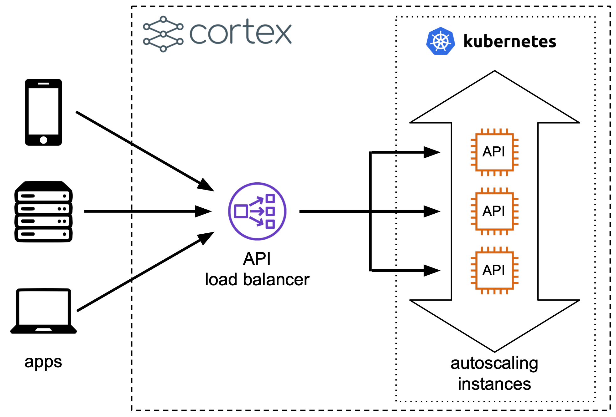 There is a separate load balancer for the Cortex operator. By default, the operator load balancer is public. You can configure your operator load balancer to be private by setting operator_load_balancer_scheme: internal in your cluster configuration file (before creating your cluster). You can use VPC Peering to enable your Cortex CLI to connect to your cluster operator from another VPC. You can enforce that incoming requests to the Cortex operator must originate from specific ip address ranges by specifying operator_load_balancer_cidr_white_list: [<CIDR list>] in your cluster configuration.