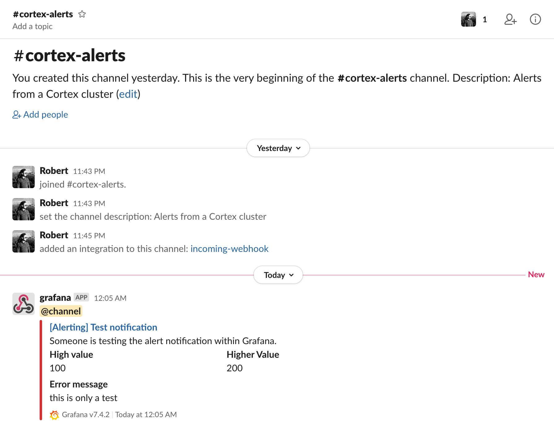 Create a slack channel on your team's Slack workspace. We'll name ours "cortex-alerts".
