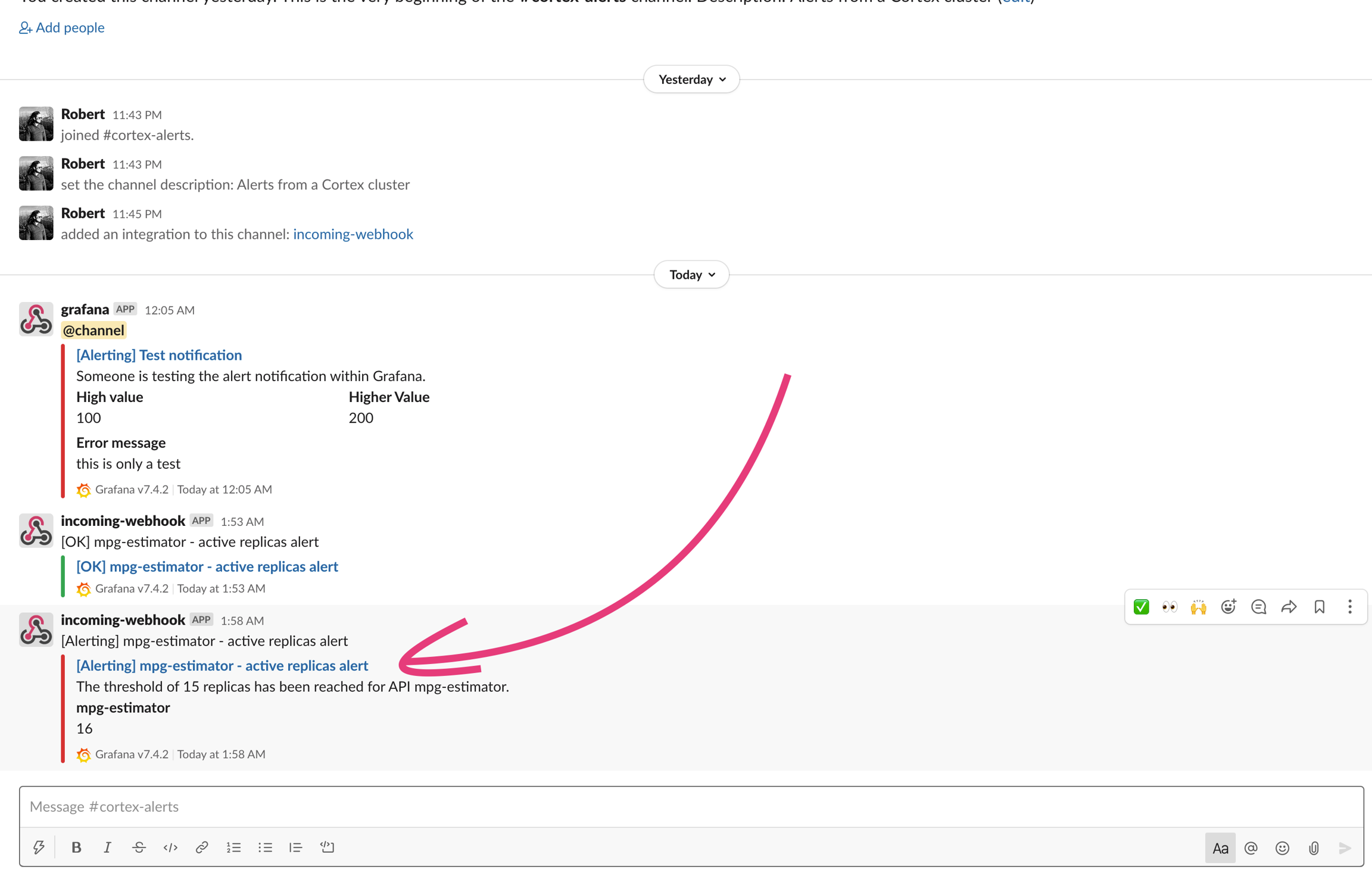 The next time the threshold is exceeded, a notification will be sent to your Slack channel.