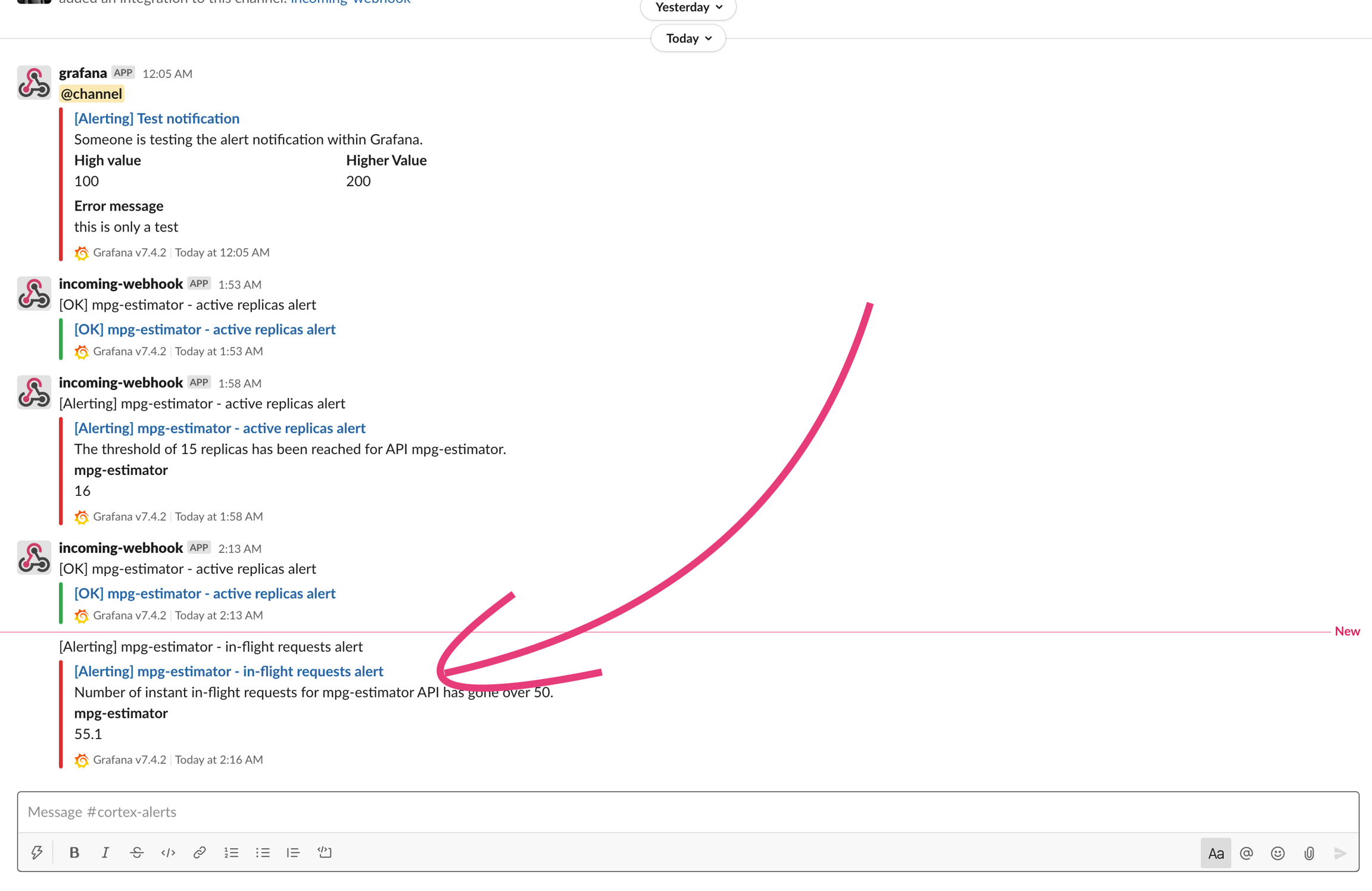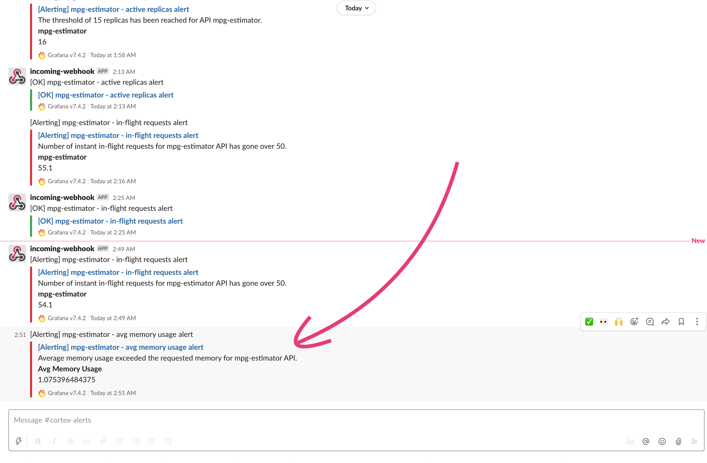 Cortex supports setting alerts for your APIs out-of-the-box. Alerts are an effective way of identifying problems in your system as they occur.