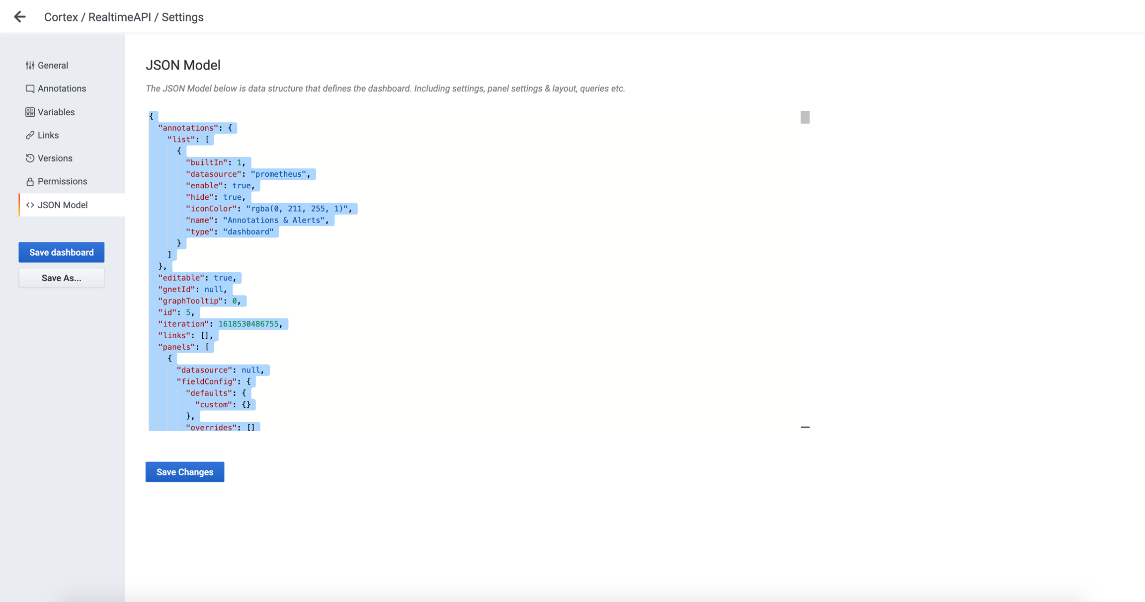 Go to the "JSON Model" section and replace the JSON with the one you've copied to your clipboard. Then click "Save Changes".